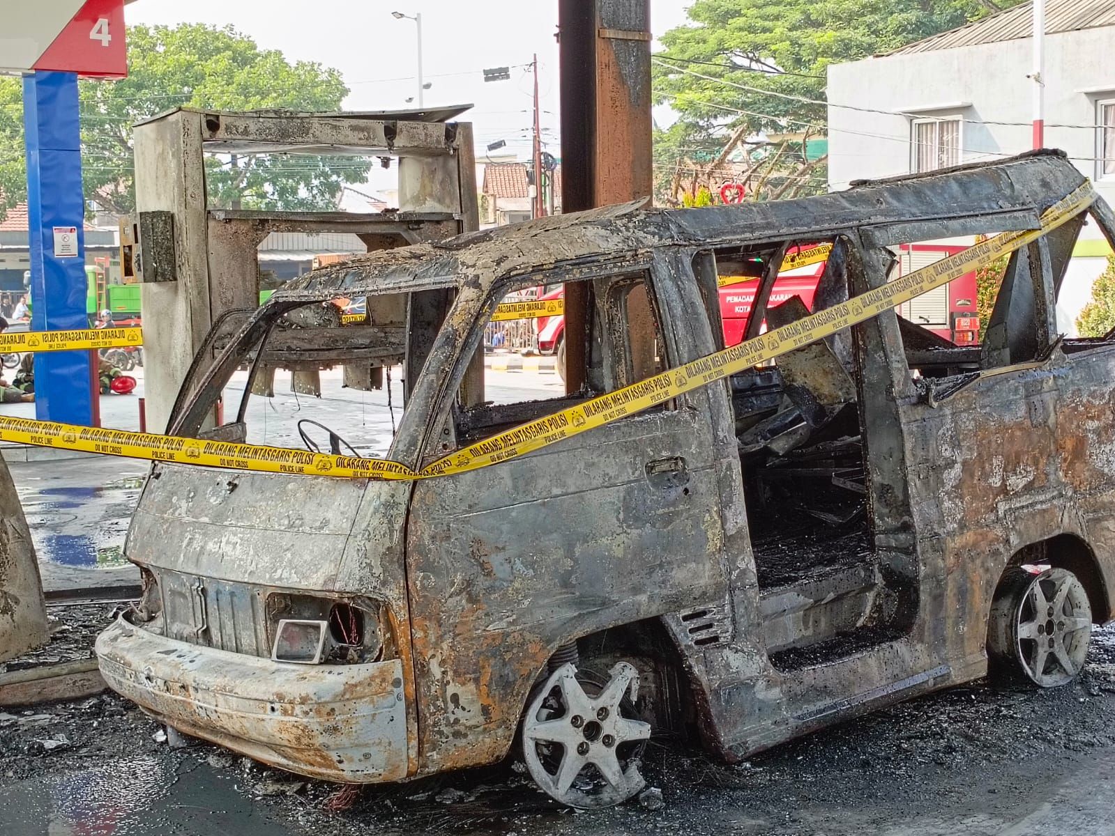 Kobaran api melalap satu unit mesin pengisian BBM dan satu unit kendaraan roda empat Angkutan Umum.